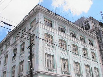 Imagen de un costado del Hotel La Unión, en el boulevard de Cienfuegos, cerca del Parque Martí